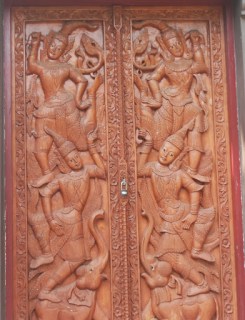 While the temple is in general disrepair and showing its age, is still interesting, especially the carved doors with thewada images (thewada are angelic beings who live in the heavenly realms) almost dancing and balancing on top of an elephant.