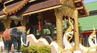 The largest viharn (worship hall) is flanked by the naga and pitaya (serpent and dragon) icons along the stairway, as is very common for temples in northern Thailand. I was surprised to see the elephant. While a part of Thai culture, elephants are not common figures at temples, except sometimes guarding the temple entrance.