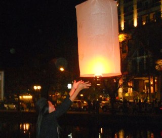 Here is a lady launching her lantern.