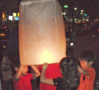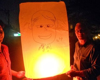 The idea is to make a wish or wish someone well and launch the lantern.