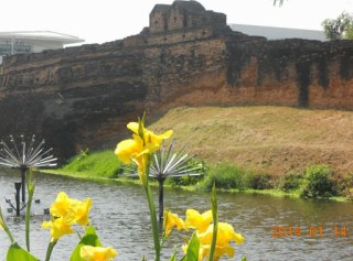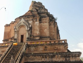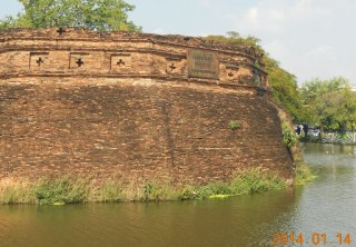 I start out walking around Wat Chedi Luang in the morning. If I rise early enough, I love being near Wat Checi Luang before 7 AM before breakfast. It is most peaceful then, and the old chedi is beautiful in the rising sun. This is a frequent view of mine of the large chedi from the east, although this was not taken in the rising sun light.