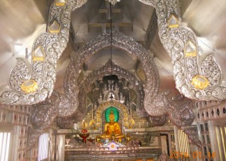 Due to poor construction material, the ubosot has been rebuilt several times, with the most recent started in 2004 and scheduled to be completed sometime in 2015. The silver artwork is done by local Lanna artists using alloy and zinc; due to the high cost, silver is used on the holy images only.