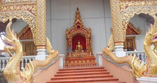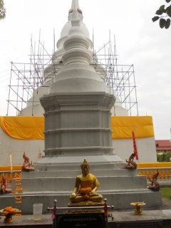 Near the back of the temple grounds are two chedi. One is clearly under restoration being surrounded by bamboo scaffolding. On the steps of the smaller chedi at the left and right corners are small statues on the Great Snake zodiac symbol. This gives further evidence that this temple really is a Year of the Great Snake temple.