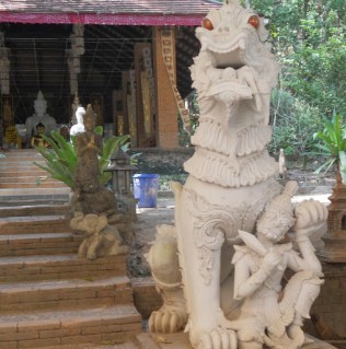 The entrance to the temple grounds are guarded by two large Singhs. The viharn in the background is open-air with no walls. It is so peaceful and quiet at Wat Palad, the walls are not needed. One can worship or meditate while allowing the natural sounds of nature in.