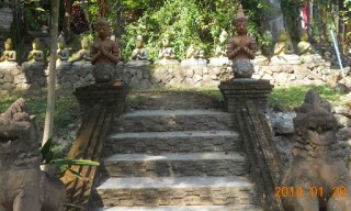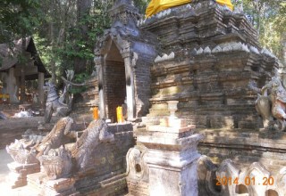 When the elephant with the relic was going up the mountain followed by the King and an entourage of soldiers and musicians, at one point the elephant came to its front knees, and it was thought that it would stop. However, the elephant arose and continued up the mountain to the loaction where Wat Phra That Doi suthep is now located. Wat Palad is a temple build in the forest where the elephant made that temporary stop. And being in the forest, there is a large stream running through part of the temple grounds.
