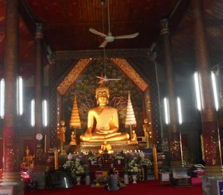 Inside the viharn. Like Wat Lok Molee, it is all teak. Many of the old temples are all teak inside, and quite striking.