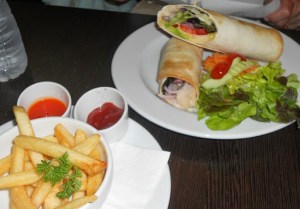 Linda was craving french fries, so she ordered a chicken wrap with a side of french fries.
