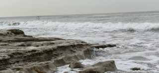 The ocean often appears fairly calm, with blue skies and moderate waves. On this morning, there are few surfers because of the relatively low waves. The waves and the sound of the ocean are meditative; the constant recurring waves and the moving tide is a reminder of the power of nature.