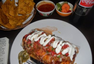 Now it was time for dinner. I was told that better than Loco-Elvis is a place right across the moat called El Diablo Burrito. So it seemed fitting to check this out. The chips and salsa are better than Loco-Elvis, and the pork burrito was quite good. I also had a Coke (as can be seen in the picture…Coca-Cola…same emblem.)