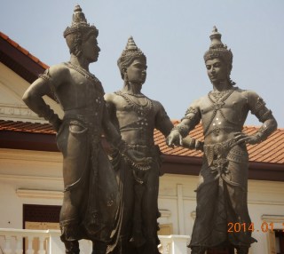 These are the three kings who founded and laid out Chiang Mai in the late 1100s. King Mengrai in the center, King Ngam Muang of Phayao on the left, and King Ramkhamhaeng of Sukhothai on the right. I just love the attitude of the Three Kings in this statue; they look proud and confident.hai, the work “new” is “mai”, so Chiang Mai properly translated is the “new walled city.”