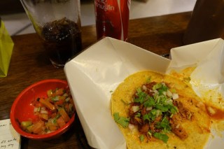 After some looking and pondering the myriad of choices, I came upon the La Monita Taco Truck, a restaurant mimicking a Los Angeles taco truck. I had eaten there last year at the end of my stay in Bangkok, and found the spicy chicken tacos to be good, so it seemed appropriate to have another go.