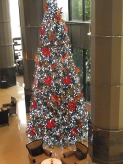This is looking down onto the very large Christmas tree in the main lobby. Really a striking and beautiful decoration. All along the shopping centers in the area are Christmas decorations and New Years countdown celebration areas, and colorful lights are everywhere.