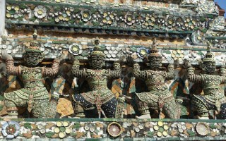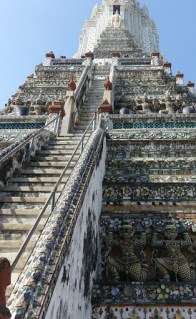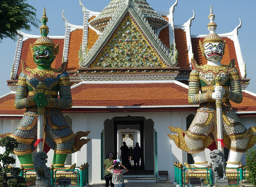 There had been a temple at this spot since at least the mid-1600s. The original name of the temple was Wat Makok, likely named for a fruit called the makok that once grew along the rivers and creeks in the area. When the capital was reestablished in Thonburi (the predecessor city to present-day Bangkok), after the Burmese took over the capital at Ayutthaya, the story is that the king vowed to restore the temple after passing it at dawn and seeing the sun reflecting off the large chedi.The name Wat Arun or more formally, Wat Arun Ratchawararam Ratchawaramahawihan, comes from the Hindu god Aruna, often personified as the radiations of the rising sun. For a time, the re-established palace was adjacent to Wat Arun, but was moved across the river by King Rama II in 1785.