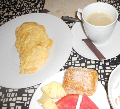 When the omelette came, my coffee arrived. This was a relatively simple Western-style breakfast, and everything about it was good, especially the coffee. Most hotels and even coffee shops use Thai coffee, and it is good. I notice that I like the flavor so much that I use less milk and sugar when I drink coffee in Thailand. Unfortunately, the coffee is so popular in Thailand that there is not much left over for export, so it is difficult or impossible to get Thai coffee beans in the U.S.