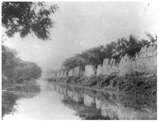 This is a very old photo showing the wall and moat in the 1800s.