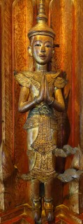 The carvings of thewada (angels) are very nice, as well. Thewada, being very similar to angels in Christianity (often described as angelic beings that live in the heavenly realms), have no gender. Sometimes the artist has them appear female and sometimes very male. This one appears very female to me.
