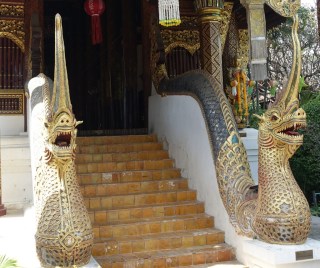 The naga on the stairway bannisters are nicely done, a little more exuberant than at many temples.