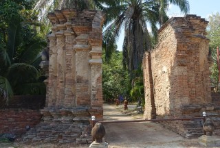 This is what I believe to be the old, now unused, entrance to the Wat Jed Yod temple complex at the eastern edge of the property. The path goes directly west from this entrance to the newer viharn, and then to the old viharn. Most viharn, including these, open to the east to greet the rising sun.