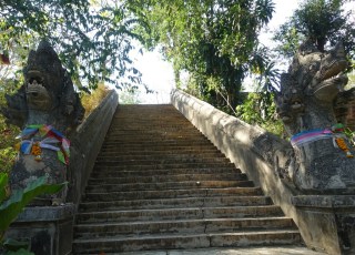 The Naga stairway leading up to the large chedi at the south end of the tunnels.