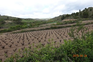 We were to be traversing a few river valleys surrounded by rich farmland, so the views and scenery were quite beautiful. We are getting into Riojas now, a major wine-producing region, so vineyards are gradually taking over from the wheat and other crops we have been seeing. Here is a view across a valley. We will be on the other side shortly.