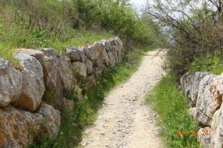 And coming up a hill between two large rock retaining walls. We are getting close to Logroño now, just 4-5 kilometers to go. This has been a very long day of walking, but as has been every day, the views and the scenery are beautiful and make one forget their tired feet and legs,