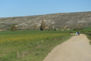 Another day on the meseta. From the elevation diagram, it seems we are in for a fairly major hill climb just outside of Castrojeriz about 3 kilometers. Again, walking over relatively flat farmland and over a small river, the hill emerged in our view ahead of us. As we got closer, it looked too long and steep to possibly the Camino path.