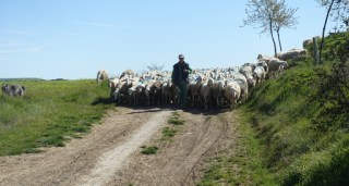 After a while we got behind a shepard moving his flock from one pasture to another. It was interesting to see how well the dogs kept the flock together and kept them moving. Many of the sheep (or maybe all) would rather just stop and eat the green plants along the path. We finally passed the flock and soon after they turned off the path to another pasture.