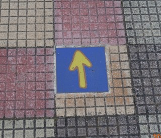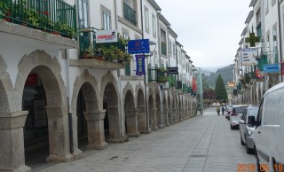 One of the bright Camino way marks in the sidewalk in part of Portomarín. Typically, when Camino way markers are in or on the sidewalk, they are more subtle. This series was quite bright. Not easy to get lost here.