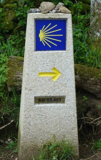 This is a very old Camino way marker. Too bad for the graffiti, but the elegance of the tablet in the stone is still clear.