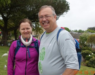 I feel very fortunate. I have had only two small, and easily managed blisters on toes in my right foot. My knees were hurting badly the first and second days, and gradually, by using my hiking poles more effectively, my knees are much better, with no pain at all each day, even on the downhills where the stress on the knees is most evident. [Using the hiking poles effectively does make use of upper-body muscles, and I have had days when that part of me was more tired than my feet and legs.]