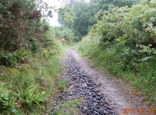 Going up the first hill, the path was rocky and uneven. This is very common on paths in the forests (and other places, too … it is very common). We were very quickly out of the town and into the forest, away from the sounds of towns and traffic, alone in the forest with the sound of the rain.
