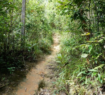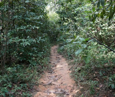 Suddenly, after climbing a series of almost stair steps in the hill, one emerges near the main road. The jungle brush and foliage muffles all sound, and thus the jungle is quiet. Coming out of the jungle along the road, the noise is quite noticeable.