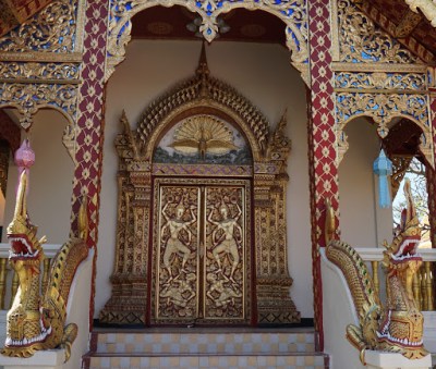 Just before we enter into the main temple area is this doorway. I have never seen these doors open, and I am always compelled to take a picture – the dancing 4-armed thewada (angels) on the doors are just so fun.