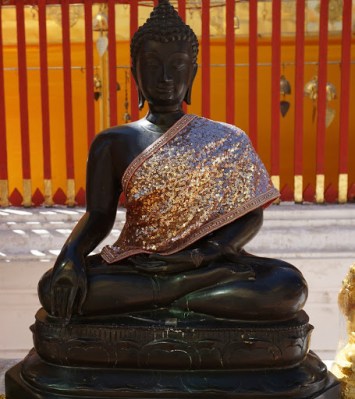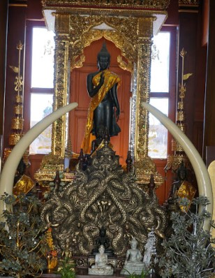 One of the Buddha icons at which people pray. This one is a rich, very dark green. It is said to have been quarried near Chiang Rai, farther to the north.