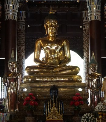 The main Buddha icon/statue at the front of the viharn. Peaceful and elegant.
