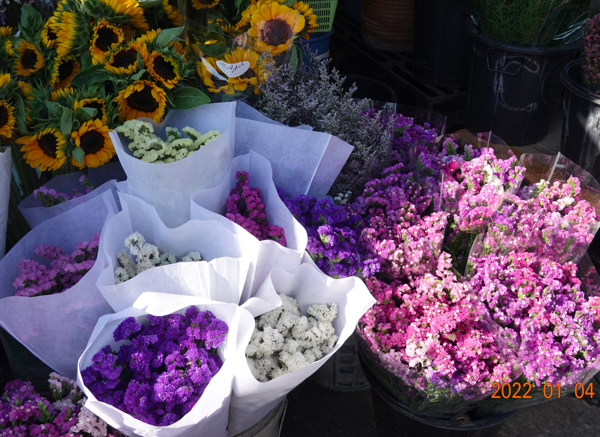 On the east side of the Warorot Market building is the Flower Market. The Flower Market is not really a specific market, but many flower sellers that have their shops adjacent to each other along Praisanee Road, the road along the river here. The flower market is always very busy. People drive up, park, buy flowers, and drive off. When walking alone, one must be very aware of the constant traffic coming and going, sometimes double-parked. A little frenetic, but it is always quite a sight – the flowers are fresh and beautiful. Here are a few pictures: