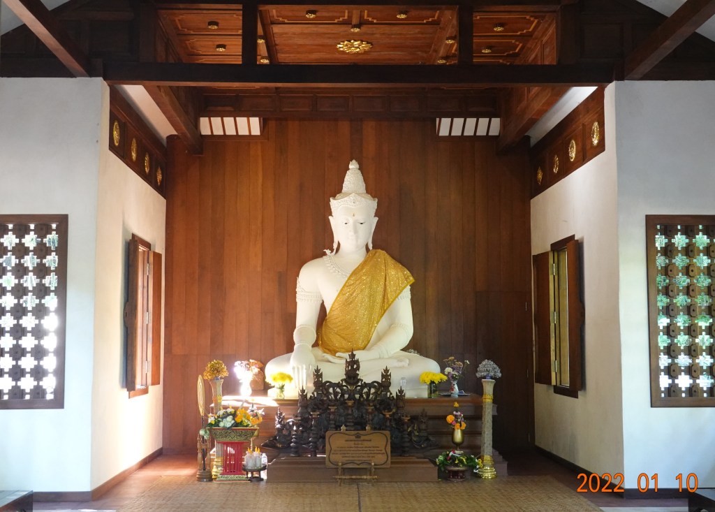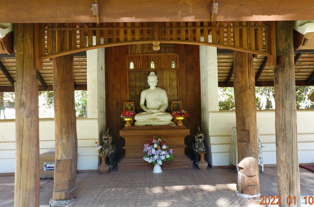 It is beautiful in its simplicity. Around the new rectangular worship area to the west is this Buddha: