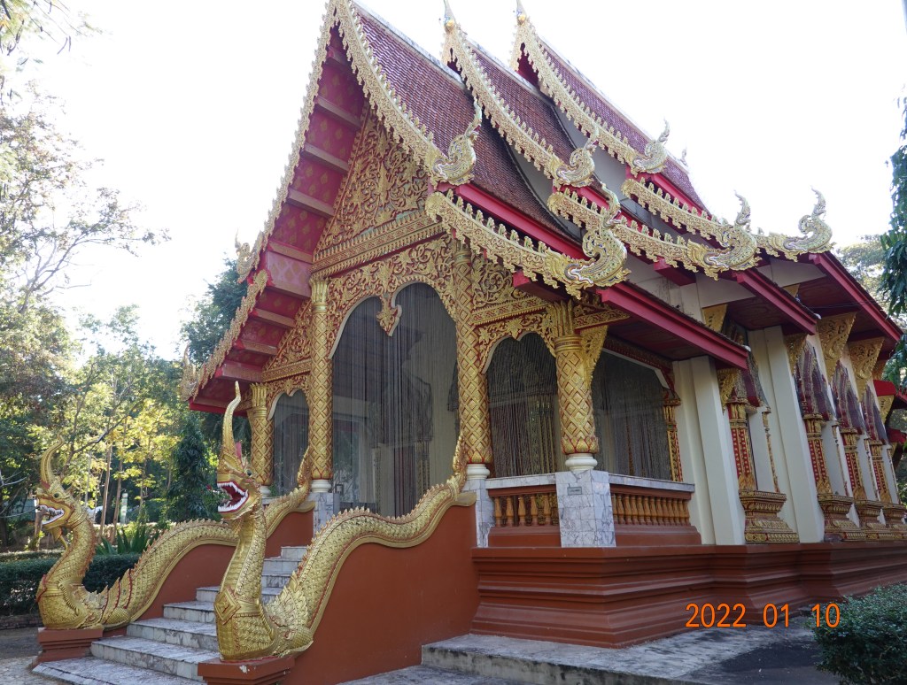 All three of the viharn were closed, but all three had a look as if they had been in use recently. At some temples, it can be almost obvious that they are not in day-to-day use: the doors are closed and locked, the stairs maybe dirty, and and the general look being unused. These appear to be in use. With the territorial dogs, I would not be coming here to worship, but that is just me. We did see a couple of monks walking around as we were there, so there are people around.