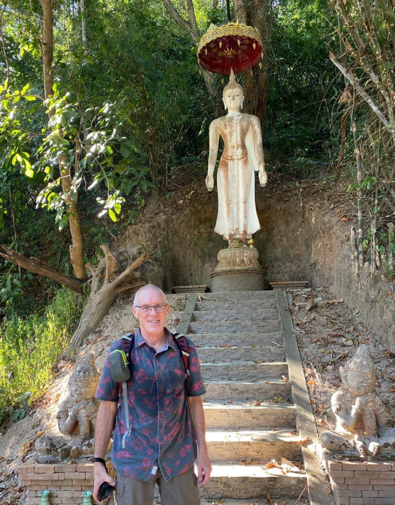 And just a little more south and slightly west Rudy got a photo of me in front of a statue that almost looks like the Buddha as an angel.