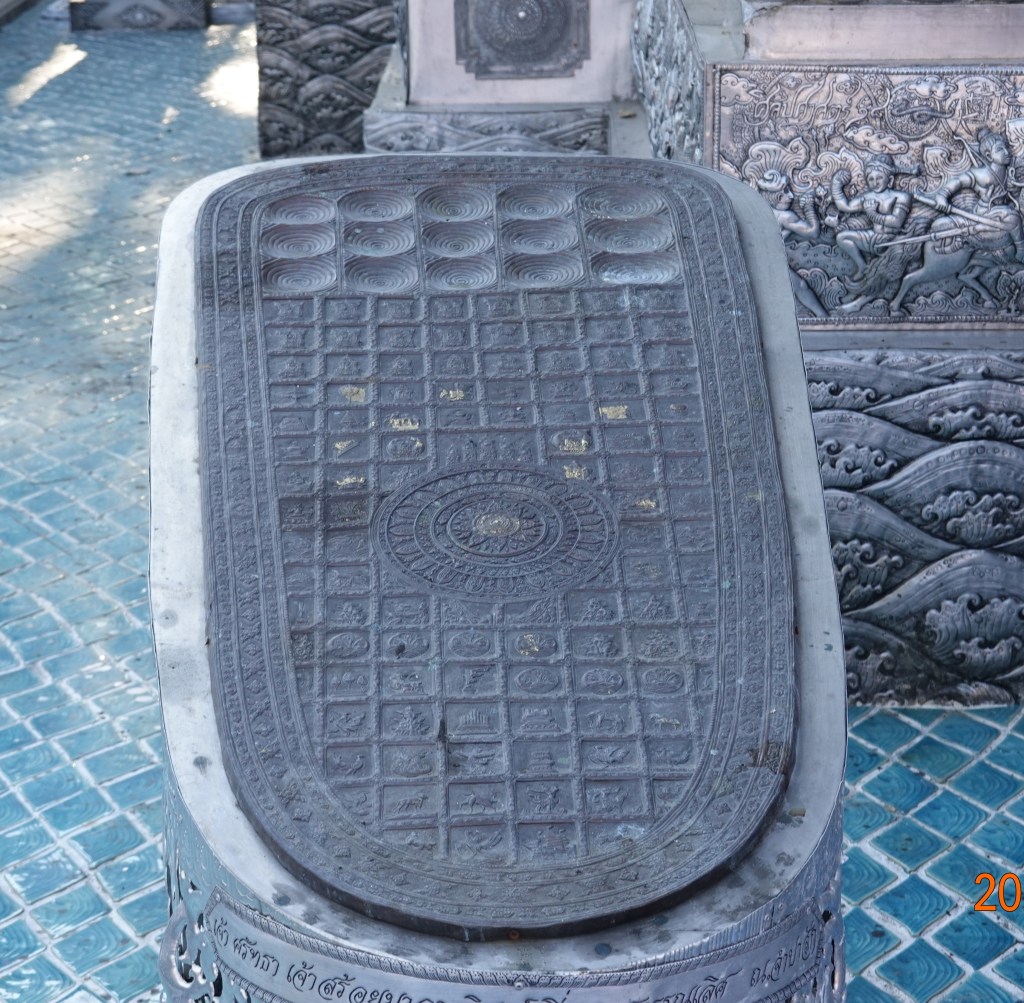 I then left the viharn and walked back by the Silver Ubosot, the main attraction at Wat Sri Suphan and why it is so famous and often busy with tourists. Flanking the Silver Ubosot are two what are called “Buddha footprints.” Here is one on the left, about a meter long.