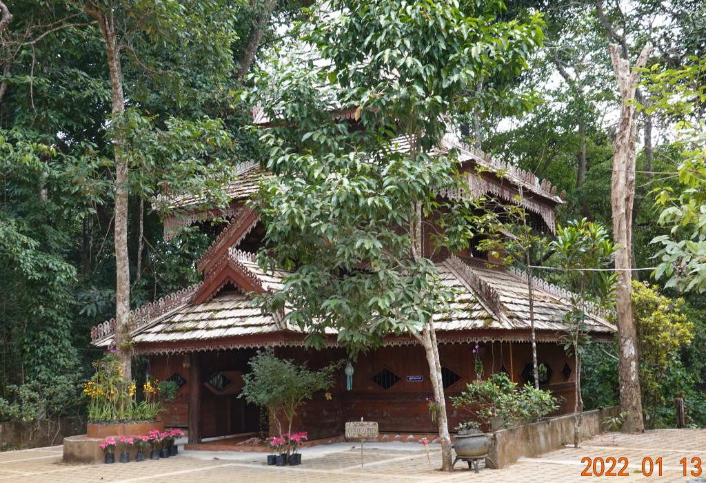 Here, almost hidden in the forest, is this very beautifully crafted viharn. The woodwork is nothing short of astounding.