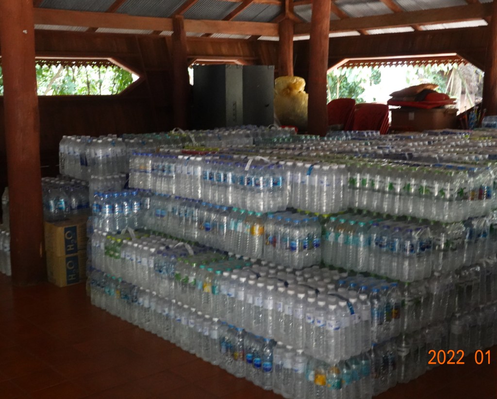 Just behind me as I was taking this picture was what appeared to be a small viharn (assembly or worship hall). Inside, I saw that they are using this for storing bottled water.