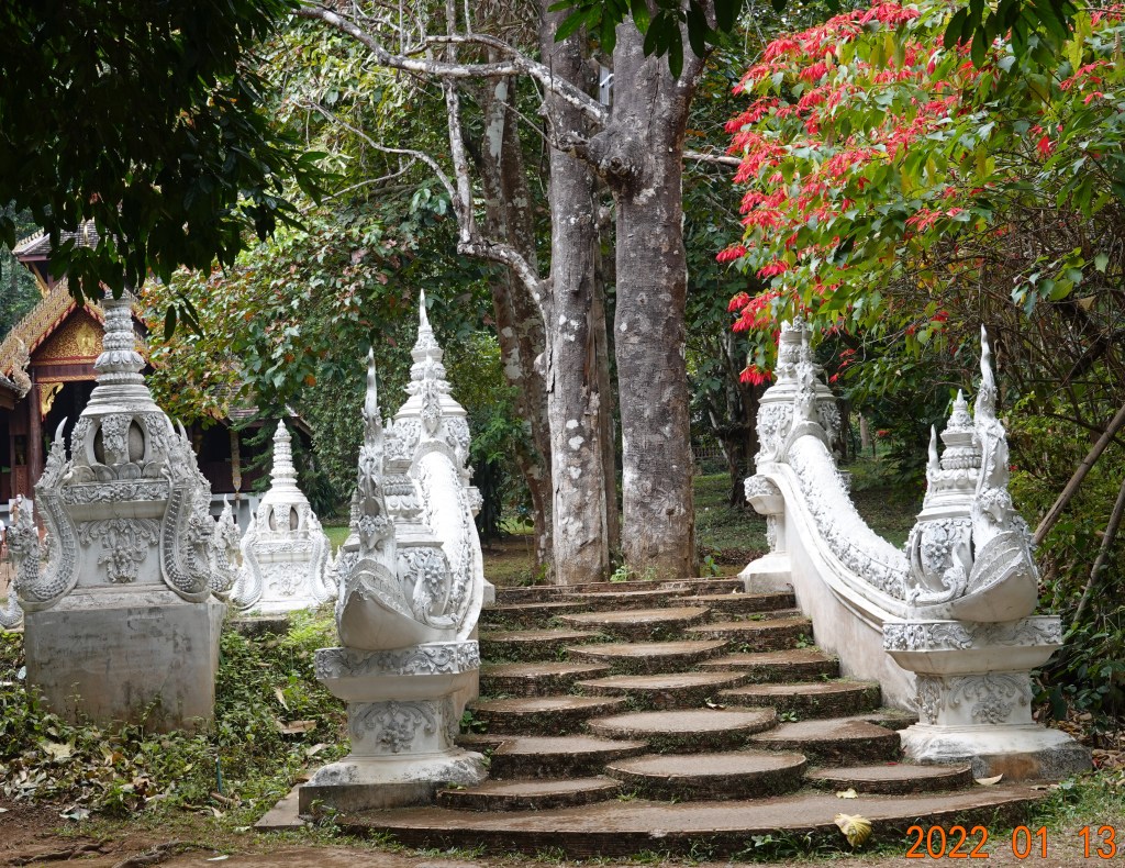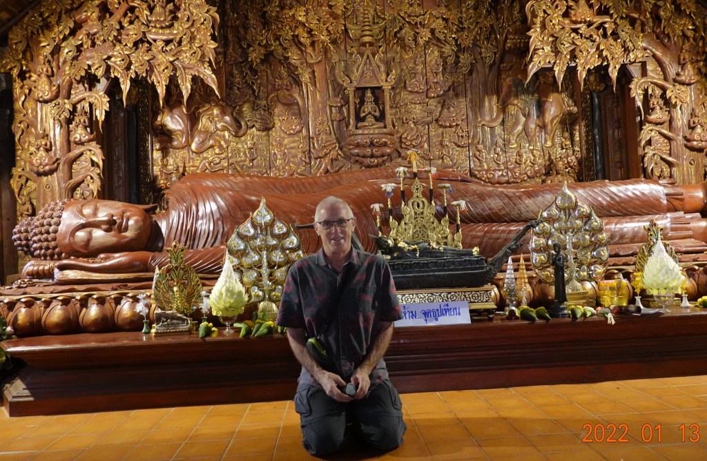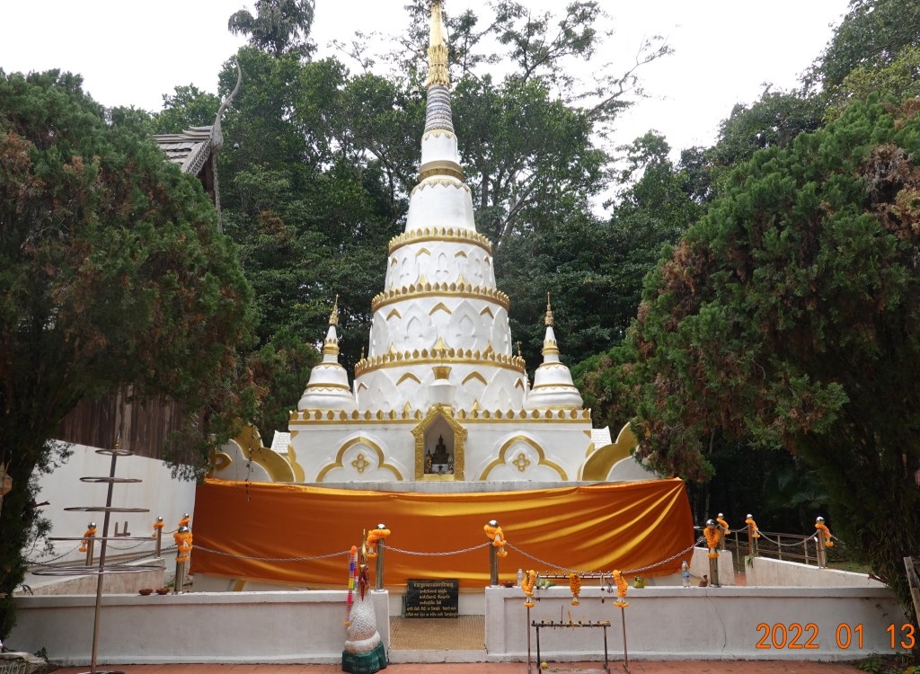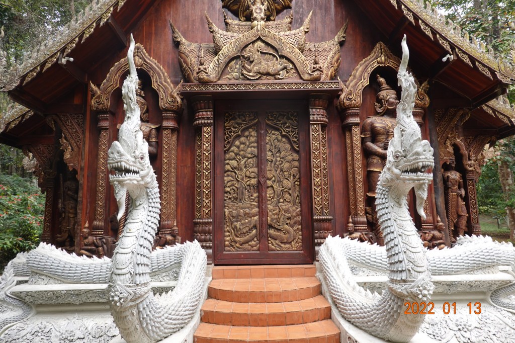 The Sunday Night Market is fun, although about the same every Sunday. The people attending are about half Thai and half tourists. There are many places to eat and socialize, and before the pandemic, this is what the Thai people did. There were also a good number of places where you could sit in a nice chair, put your feet up, and get a foot massage – one hour for 150 baht (about $5). My very first time at the Sunday Night Market, I sat down, and Nam was massaging the feet of a lady from Belgium in the chair next to me. The Belgian lady told me that Nam was the best and massaged her feet every week. I waited and Nam massaged my feet next. It is more than just the feet, really from the knees down, and most of the ladies doing the massages also know reflexology. After walking around all day, a foot massage in the evening is great just before turning in for the night. I enjoyed my foot massage with Nam, and the next Sunday, I found her again. Since that first Sunday, Nam has massaged my feet every Sunday at the Sunday Night Market, for the past eight years, except for last year when Thailand was closed to tourism. I have met her sister who also massages, her daughter and son-in-law, all very nice people. This year, because of the pandemic, Nam is not massaging on Sundays. She and her daughter have a copy and sign shop in Mae Wang where they live, about 40 kilometers (25 miles) south and slightly west of Chiang Mai. She invited me to join the the family as they were to visit to Wat Luang Khun Win in the mountains west of Mae Wang.