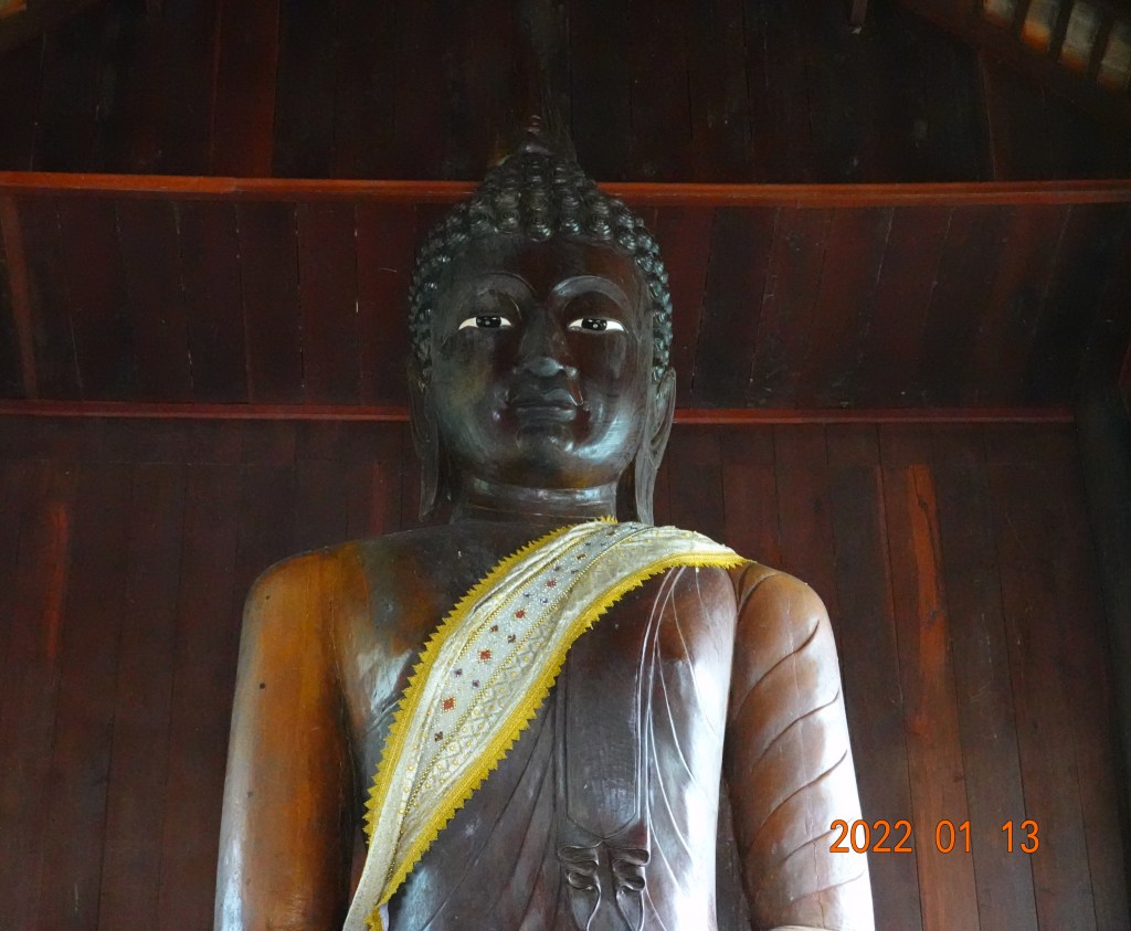In the next building, perhaps an ubosot (ordination hall), was this 9-meter (30 feet) tall Buddha image, also carved from one large Champas tree.
