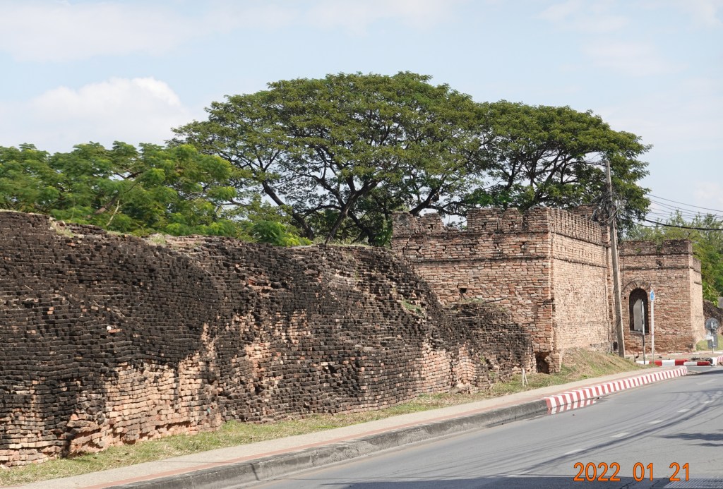 Walking home from my lunch at Khao Soi Khun Yai, I almost immediately came upon parts of the old city wall and the gate on the north, Chang Phuak Gate, or as it is in Thai, Pratu Chang Phuak.