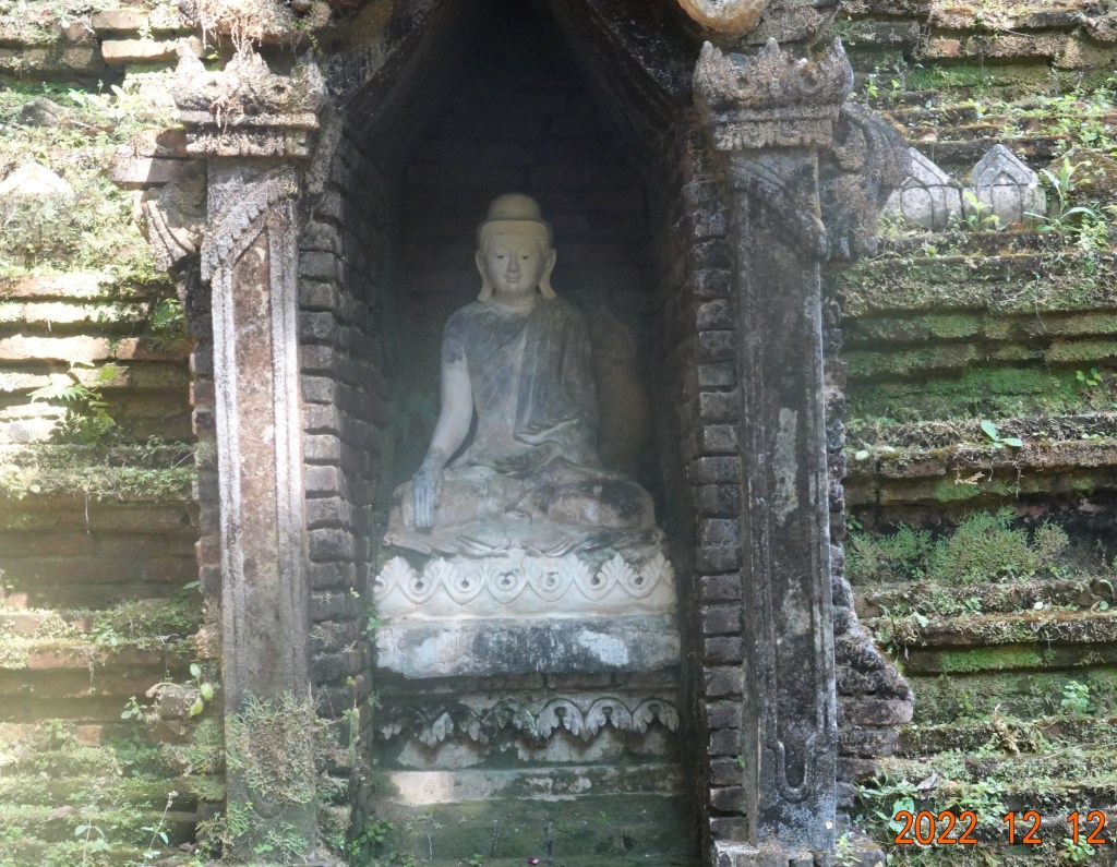 Then there is this very old, and moss-covered chedi. Mostly a chedi is at the west side of a viharn (worship hall). The doors of a viharn open to the east to greet the rising sun, and the chedi is at the west side because the ashes of someone are typically interred in the chedi, and the setting sun represents the end or death. This chedi at Wat Phalad is basically all by itself.