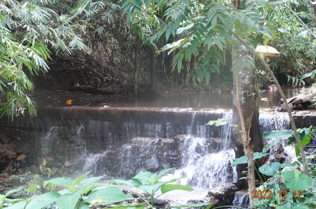 The rainy season only ended a couple of weeks ago. Water in the creek that runs along Wat Phalad was running far more than I have seen in the past. At one point there is a little dam to control the flow, and it was quite full. Here is a picture:
