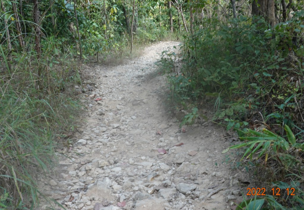 Doi Suthep is a large mountain, so it is not a surprise that so much water is still flowing off the mountain. I walked around over to the larger viharn, but there was an event taking place with many people, so I did not try to get any pictures. Being a fairly hot day and having hiked a fairly long way, I decided to head down the mountain. Hiking down is sometimes more difficult than climbing up. Down is harder on the knees, and there are many slippery leaves on the trail on which it is easy to slip and maybe fall. Also, the erosion has left many sections rocky and unstable. I proceeded downward with care.