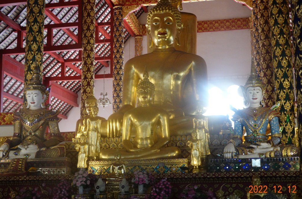 Suan Dok translates to flower gardens. Many years ago, this area was where the Chiang Mai king’s flower gardens were located. I entered the large viharn at Wat Suan Dok. This is the largest viharn of any temple in the Chiang Mai area. Difficult to show how truly large it is from a picture – it is very large!
