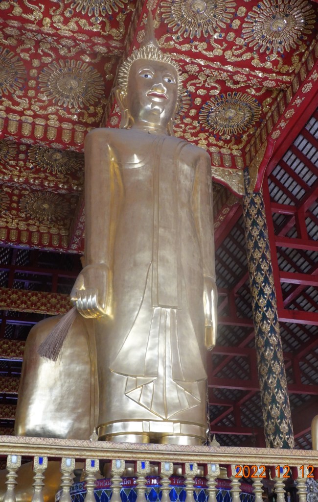 Wat Suan Dok has a deep history and a story which I will give in a future blog post. I walked to the back of the Buddha statues where this very tall standing Buddha looks out to the large gold chedi: